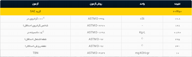جدول مشخصات روغن موتور چهارفصل سوپر اسپیدی :