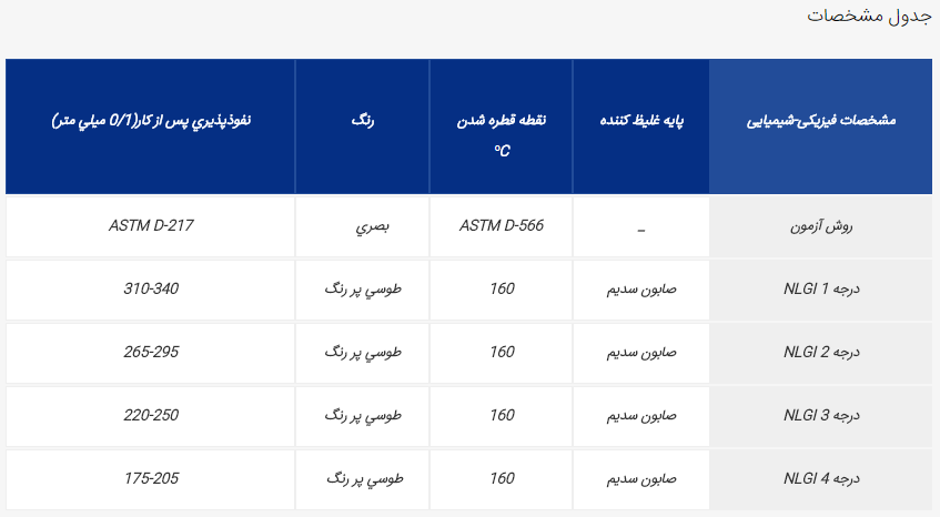 - پایداری مکانیکی و حرارتی عالی: این گریس در برابر تنش های مکانیکی و حرارتی مقاوم است.